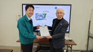 カーボンニュートラルの規格(ステップ2・CN)の登録第1号事業者に登録証を授与しました